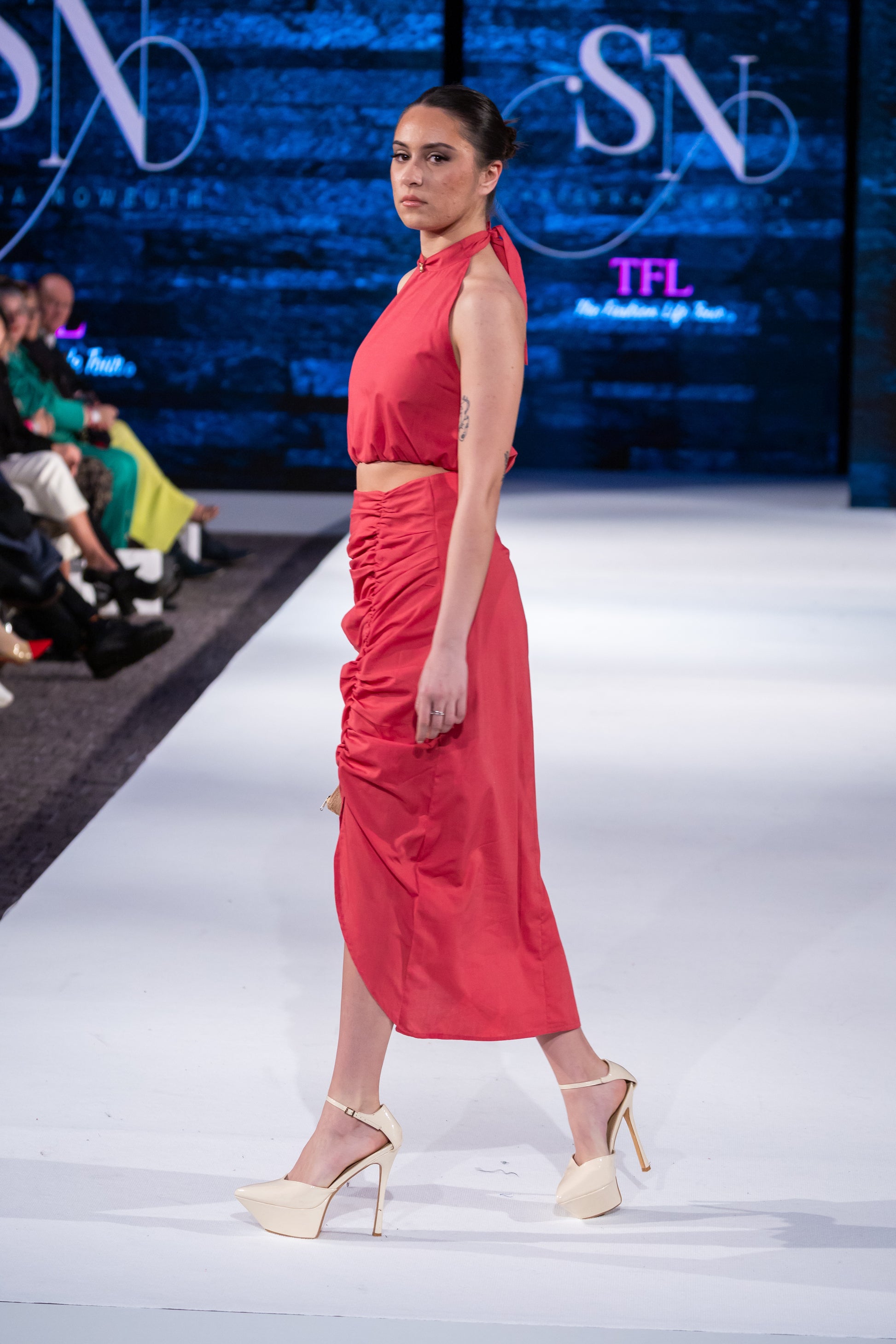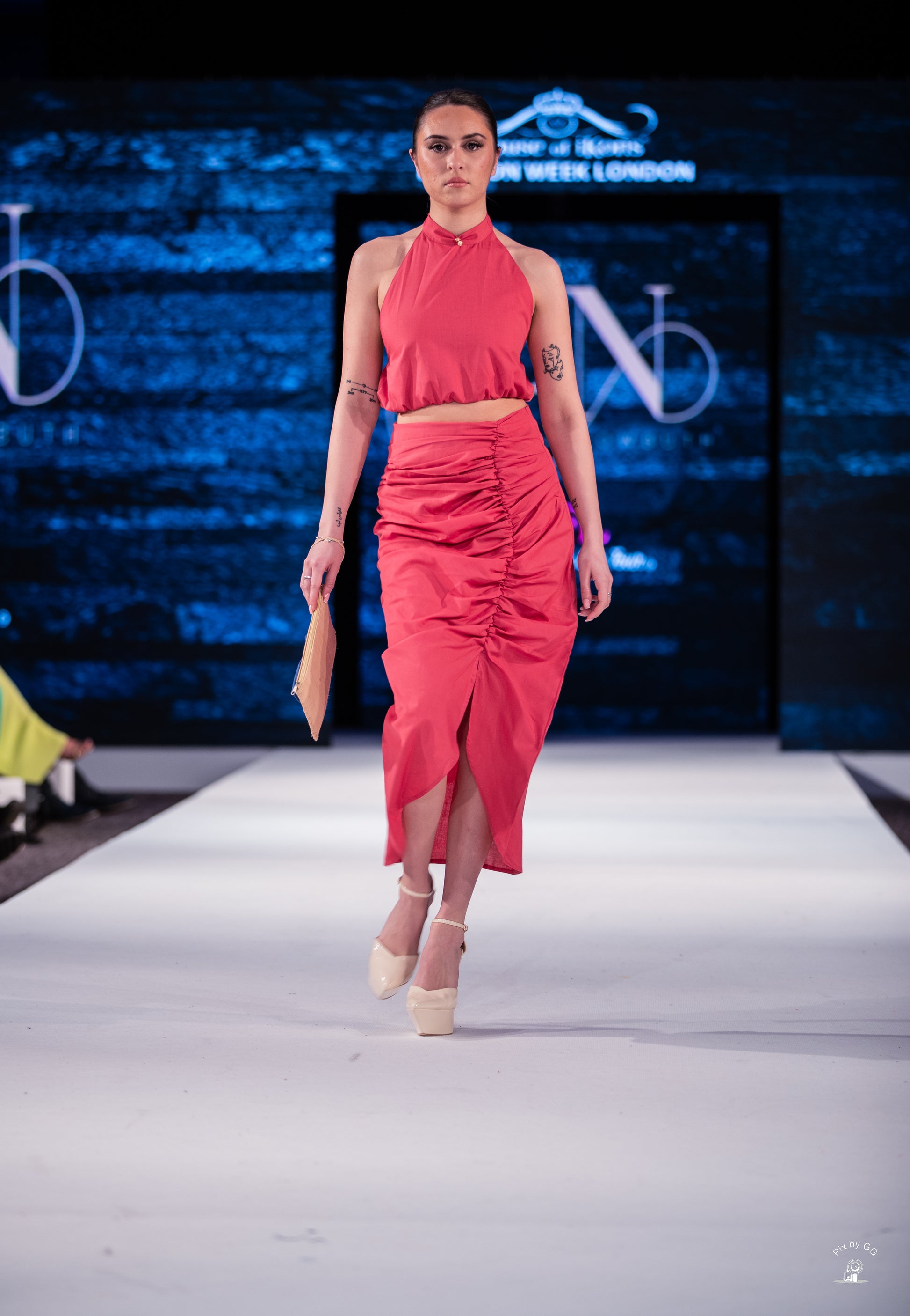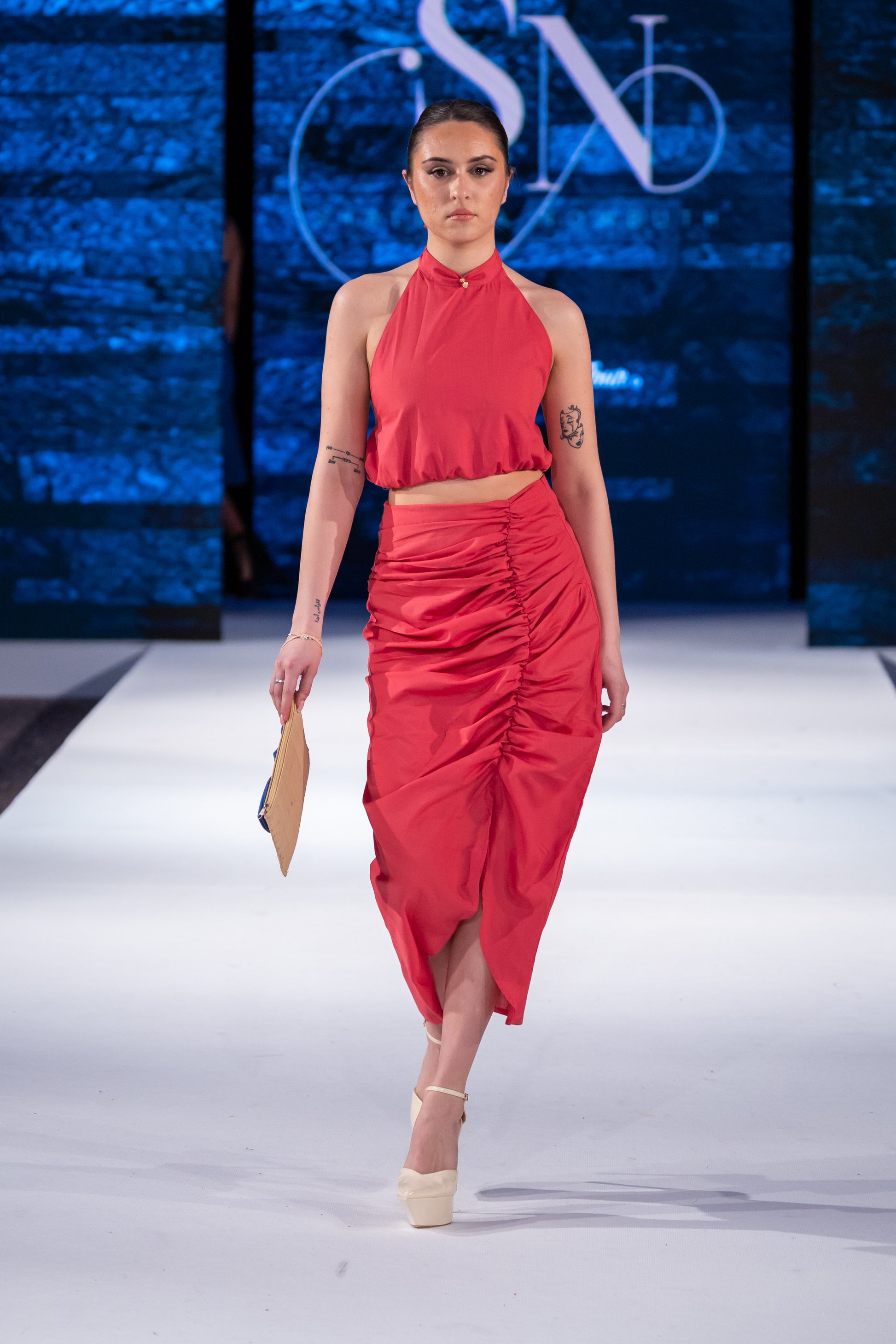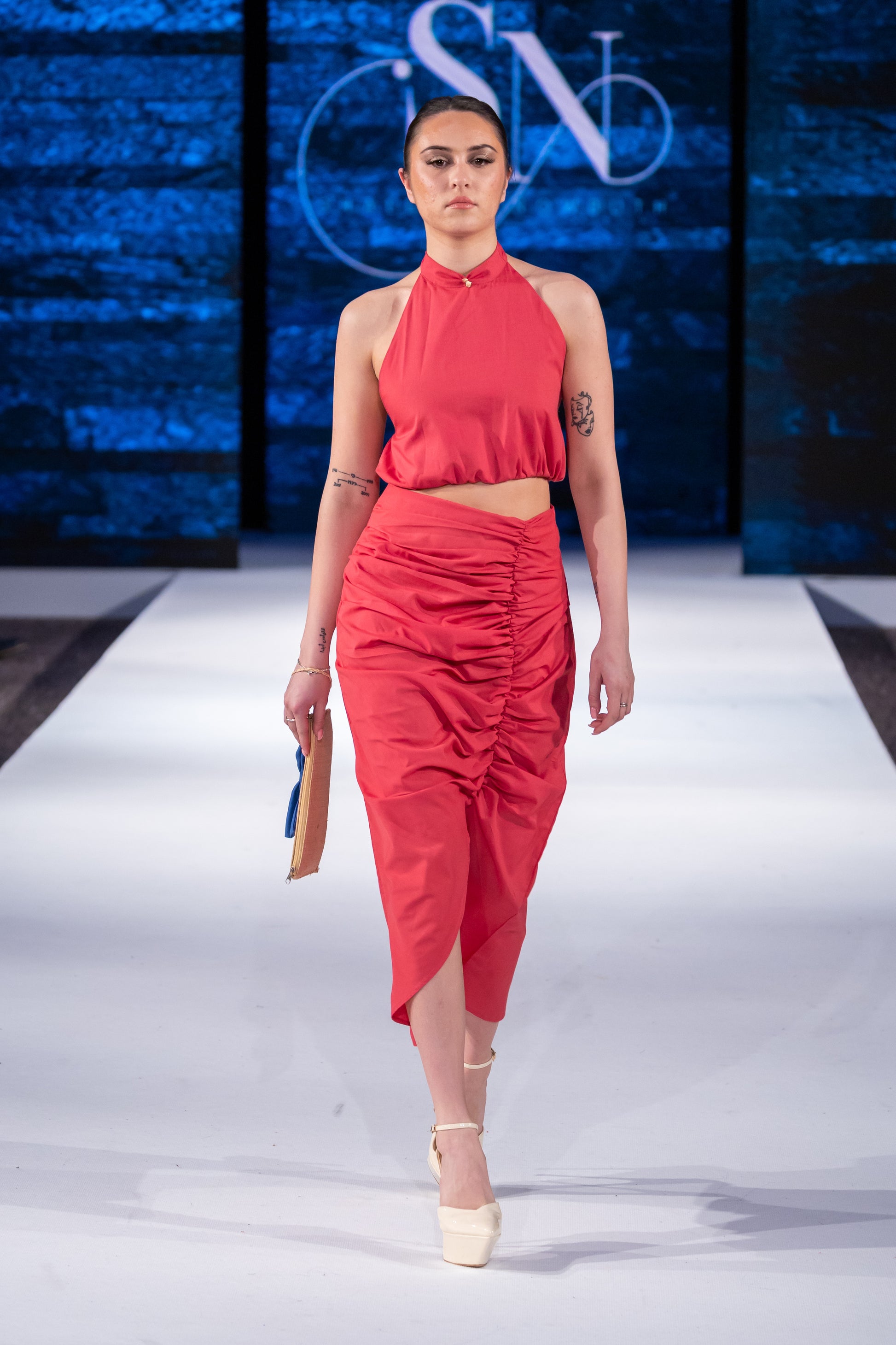 Chanelling the vibrant spirit of Mauritius, this look takes inspiration from the pink hibiscus, a tropical emblem of beauty, strength and allure. With every fold and curve, it blooms with island charm and runway confidence.